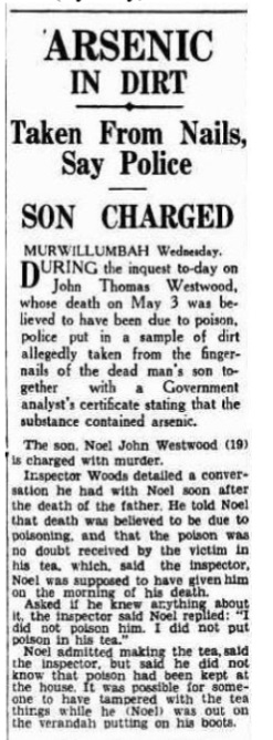 Death Of Thomas Westwood: Son For Trial On Murder Charge. Tweed Daily (Murwillumbah). 26 May 1932