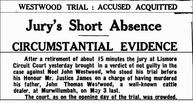 Not Guilty: Noel Westwood Acquitted. Daily Examiner (Grafton). 22 September 1932